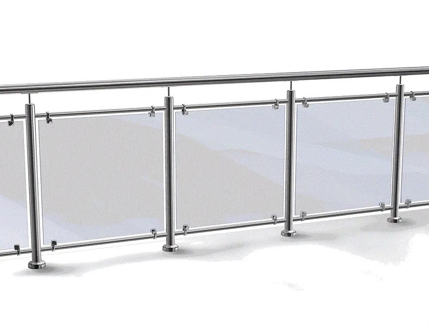 Скляні деталі відмінно виглядають в комбінації з круглими або прямокутними трубами з нержавіючої сталі, а також дерев'яної або алюмінієвою основою. Максимальна висота скляних огорож – 1,2 метра, а товщина внутрішнього наповнення – від 8 мм. Для монтажу застосовуються спеціальні стійки, власники, підлогові або бічні затискачі.